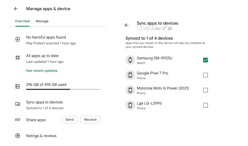 У некоторых пользователей Android-смартфонов при переходе в раздел «Управление приложениями и устройством» может появиться новый пункт – «Синхронизаций приложений с устройствами». В нем будут отображаться все подключенные к аккаунту гаджеты, которые поддерживают установку ПО из Google Play, будь то смартфоны, планшеты или смарт-часы. В этом разделе можно выбрать, на какой из используемых девайсов стоит автоматически установить приложение.
