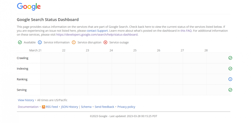Как сообщили в Google, теперь в Google Search Status Dashboard появилась вкладка Ranging (Ранжирование), где будет указываться информация о происходящих апдейтах. Если нажать на значок «i», то появятся данные о названии, дате запуска и описании обновления.