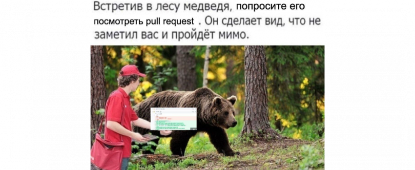 Если в пятницу вечером показать Pull request из полусотни разнородных коммитов – буду более чем солидарен с медведем: