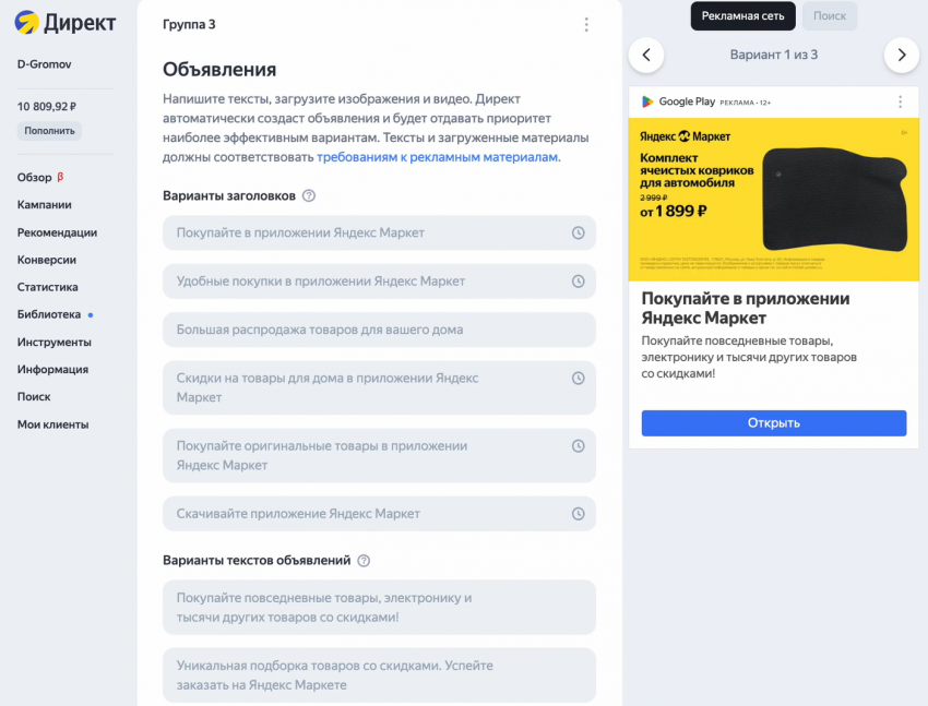 Яндекс позволил в бета-версии воспользоваться блоком «Группы», который появился внутри рекламных кампаний по продвижению мобильных приложений. Данная функция позволяет объединить в одну стратегию до 10 групп с разными текстами, изображениями и настройками. При помощи нового инструмента можно: