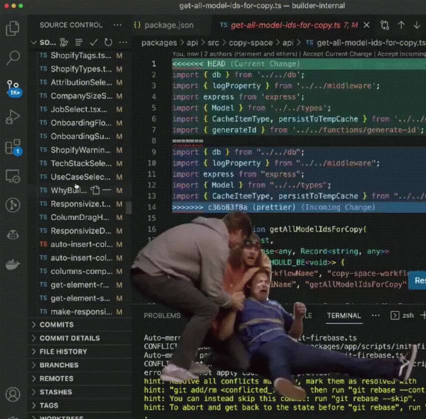 Когда первый раз разбираешься с конфликтом слияния в Git: