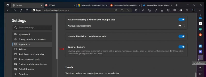 Microsoft добавит в браузер Edge режим «Edge for Gamers», направленный на улучшение пользовательского опыта как во время, так и вне игр. Функция появилась в очередной сборке на канале Canary, найти ее можно в настройках внешнего вида.