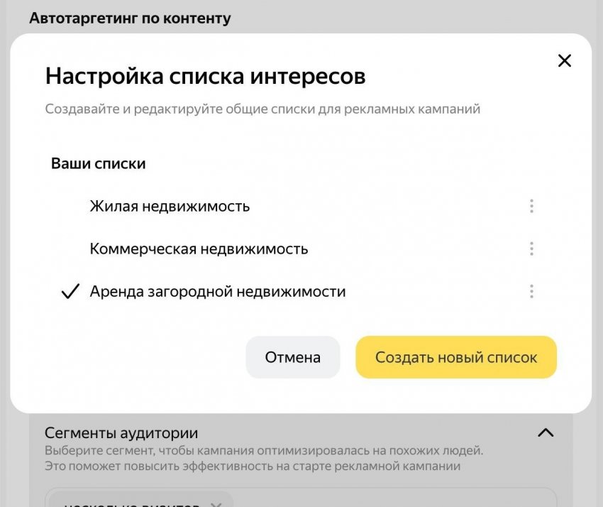 Чтобы добавить интересы к созданной кампании, необходимо перейти в блок «Оптимизация». После подключения интересов аудитории система будет работать как дополнение к автотаргетингу.