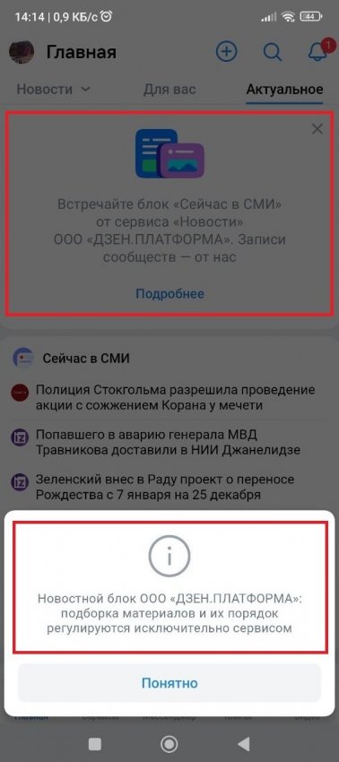 С момента покупки рекомендательного сервиса Дзена холдингом VK, это первая интеграция платформы в соцсети, которые принадлежат компании. Данный раздел находится в блоке «Новости» во вкладке рекомендации – в приложении Одноклассники и в разделе «Актуальное» – в приложении ВКонтакте.