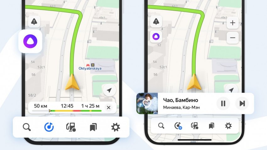 В обновленном приложении Яндекс Карты появилась интеграция с сервисом Яндекс Музыка. Интерфейс Музыки доступен в режиме Навигатора в Картах – в меню есть кнопка для выбора музыки или подкастов.
