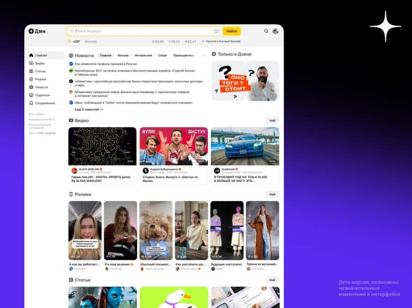 Дзен тестирует обновленный вариант отображения контента на главной странице