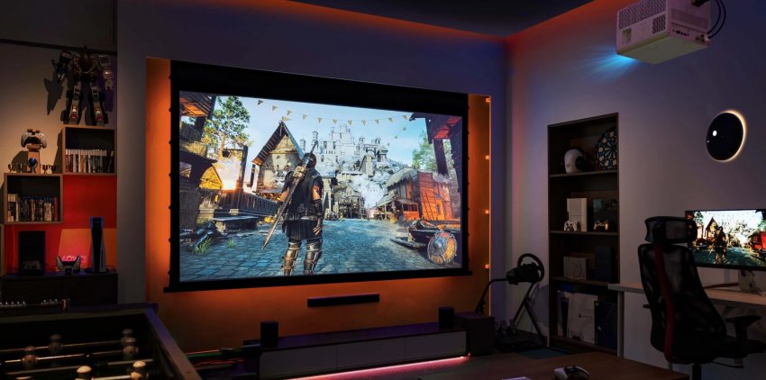 Cистема высокой яркости 4 LED дает возможность проектору охватывать сто процентов гаммы DCI-P3. Качественное изображение является основным преимуществом проектора – он позволяет выбирать игры разного жанра: RPG, SPG, FPS, RCG. При подключении устройства есть функция автоматического выбора.