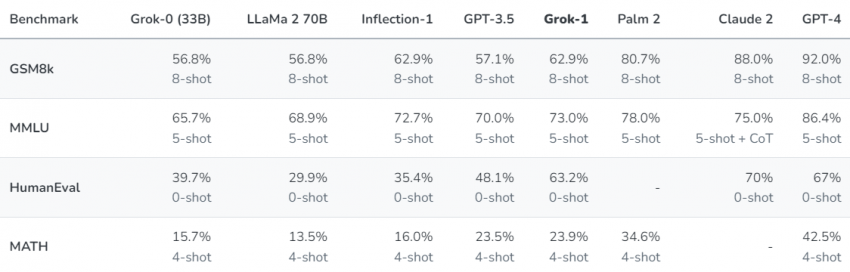 Результаты тестирования разных нейросетей. Источник: сайт xAI