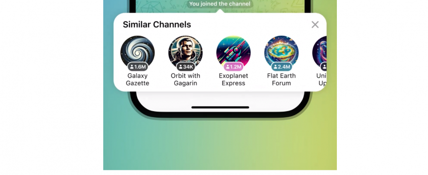 После присоединения к одному каналу пользователю будет показываться список похожих на него. В нем указываются только публичные каналы, а подбор осуществляется автоматически по пересечению аудиторий. Список похожих каналов также отображается в отдельной вкладке в профиле канала.