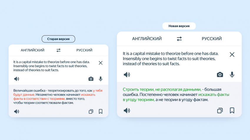 Оценка улучшенного переводчика происходила посредством методики SbS, и в 57% случаев обновленная программа показывала более качественный результат. Воспользоваться улучшенной технологией можно на странице Переводчика, в браузере и поисковике.
