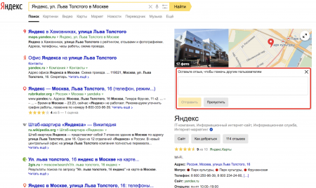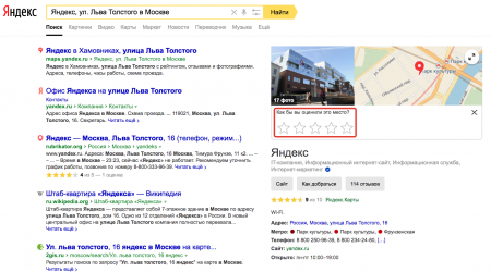 Рейтинг является важным сигналом для ранжирования организаций на картах Яндекса, поэтому за последние полгода мы серьезно переработали подход к его подсчёту. В частности, теперь на рейтинг влияет надёжность источника оценки, общее число оценок и их ожидаемая полезность. А для того, чтобы у пользователей было больше возможностей оставить свой отзыв на организации, мы внедрили серию обновлений и в сам поиск.