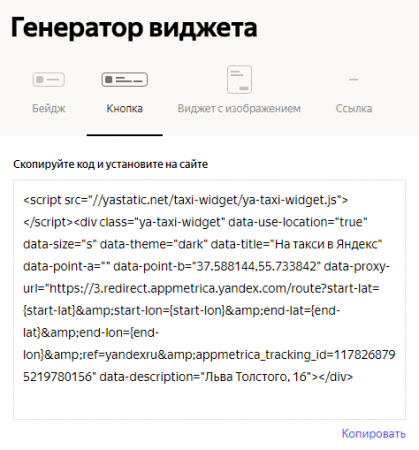 В Яндекс.Такси выпустили виджет для быстрого заказа такси. Он пригодится сайтам кафе, бизнес-центров, фотосалонов — любых организаций, куда можно добраться на
