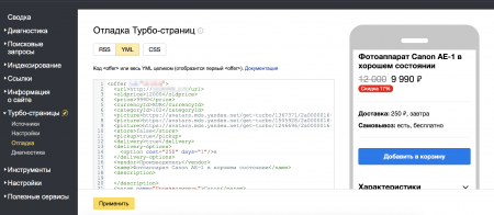 Если вам вдруг не понравились ваши Турбо-страницы для интернет-магазинов или вы некорректно задали корзину, то вы всегда можете легко удалить Турбо-страницы магазина из поиска: просто выключите фид. Турбо-страницы в течение нескольких дней пропадут из Поиска. После внесения нужных изменений добавьте YML заново и включите его.