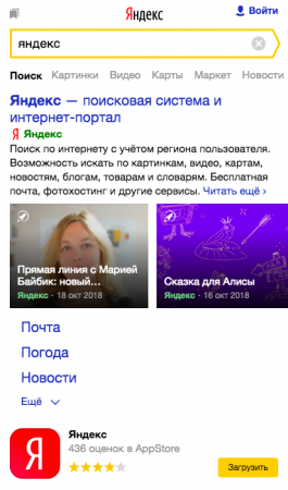 Мы хотим показывать больше полезной для пользователей информации, поэтому недавно обновили в Поиске навигационный ответ. Как и раньше, мы показываем его тогда, когда с высокой долей вероятности предполагаем, что по запросу пользователь хотел видеть именно этот сайт. Однако теперь мы добавили в навигационный ответ рекомендации контента с сайта. Они строятся на основе данных, которые доступны нашим сервисам, таким как Турбо-страницы и Яндекс.Новости. В будущем мы планируем расширять эту функциональность.