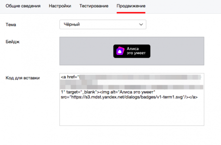 Теперь любой создатель опубликованного навыка может сгенерировать в Яндекс.Диалогах уникальный бейдж «Алиса это умеет» со ссылкой на свой навык в каталоге.