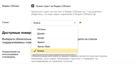 За навыками, которые используют её голос, Алиса будет следить особенно тщательно, так что и на разработчиков выбор этого голоса накладывает особые обязательства по качеству навыка.