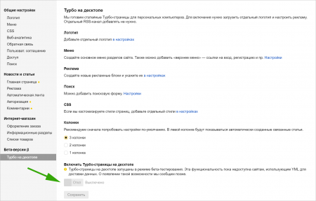 Однако перед включением десктопных Турбо-страниц рекомендуем вам: