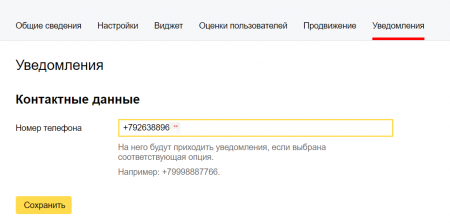 · чтобы настроить получение SMS-уведомлений, зайдите в консоль Диалогов, перейдите на вкладку «Уведомления» и введите номер телефона для получения SMS.