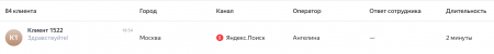 Город — откуда поступило сообщение в чат. Канал перехода в чат — откуда написал клиент.Имена операторов, которые работают или когда-то работали с чатом.Ответ сотрудника — через какое время оператор ответил на первое сообщение клиента в чате.Длительность — продолжительность диалога.Также данные о чате и клиенте вы можете найти в блоке Информация (справа от каждого чата). Кроме того, появилась возможность добавить телефон, имя и email клиента, обратившегося в чат.