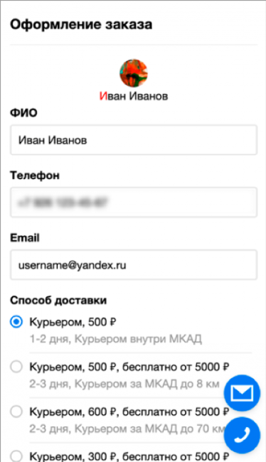 — Автозаполнение формы заказа помогло сократить количество шагов посетителя до покупки — данные клиента автоматически подставляются в окне оформления, если он указал их при регистрации на Яндексе и в момент покупки авторизован.