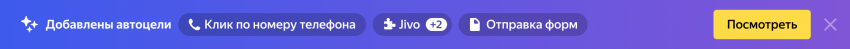 Если вы хотите отслеживать больше событий в онлайн-чате Jivo, можете настроить остальные виды целей вручную или написать в службу поддержки Метрики с предложением дополнить список автоцелей Jivo.