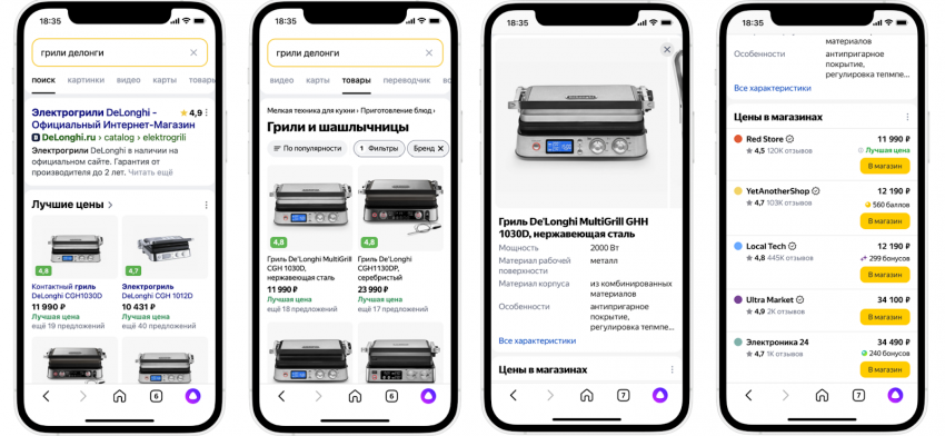 Поиск по товарам соберет информацию о предложениях разных магазинов в удобные карточки. Например, пользователь ищет холодильник. Новый поиск сравнит цены, покажет отзывы и рейтинг, скидки и похожие предложения. Покупателю — проще сделать выбор, а магазинам — показать свой товар потенциальным клиентам и получить дополнительный целевой трафик.