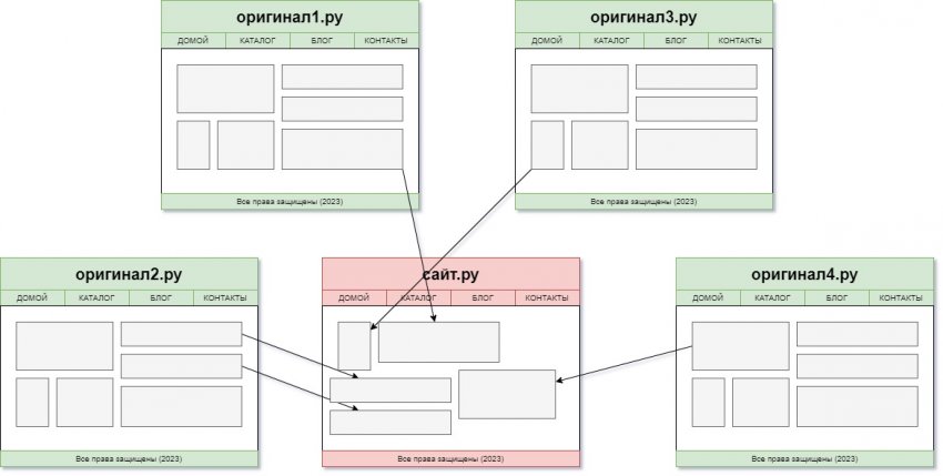 Некоторые сайты собирают фрагменты статей из разных источников, не создавая оригинального контента. Здесь речь идёт о недобросовестной компиляции без пользы для читателей, когда единственная цель — привлечь трафик. В результате пользователи Яндекса попадают на малополезный сайт.