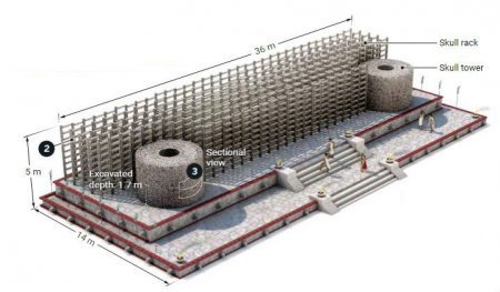 В общей сложности в двух башнях и стойке было выставлено несколько тысяч черепов. За два сезона раскопок ученые нашли 180 целых черепов и тысячи фрагментов.