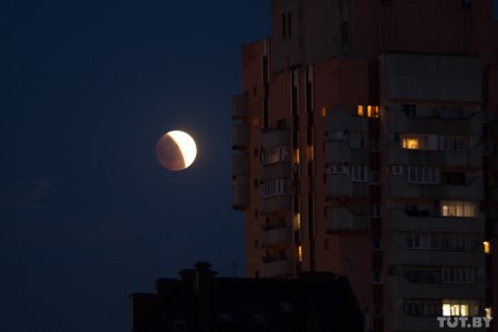 Полное лунное затмение началось в 22.30 по минскому времени, а закончилось в 0.13, оно продлилось около 103 минут. Это затмение стало самым продолжительным в XXI веке.