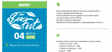 В письме нам предложили купить билет и посетить мероприятие на общих основаниях. Стоимость его, начиная за месяц до события, — 35 долларов (в мае можно было купить дешевле — за 25). А дороже всего обошлось бы посещение ЭкоФеста, если покупать билет на месте, — 100 долларов.