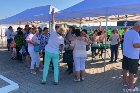 В итоге его общение с посетителями так затянулось, что торжественную речь пришлось передвинуть на час, что, впрочем, совершенно не смущало посетителей, спрятавшихся под большими тентами и разложивших там свои обеды.