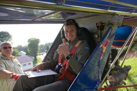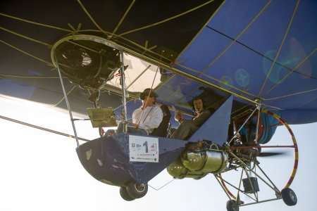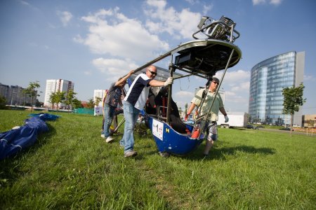 На дирижабле, который было видно из нескольких районов Минска, поднимался один из лучших экипажей на Земле: вице-чемпион мира по воздухоплаванию Римас Костюшкявичус и его сын Рокас, дважды чемпион мира среди молодежи и чемпион Европы.