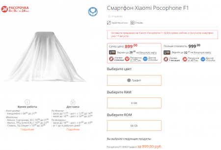 За версию графитового цвета с 6/64 ГБ памяти в Беларуси попросят 899 рублей (около 450 долларов).