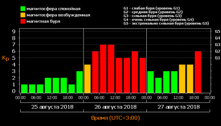 Первые колебания произошли рано утром 26 августа и продолжались на протяжении следующих двух дней. Произошло две магнитные бури уровня G2 (умеренная) и G3 (сильная). На момент публикации в магнитосфере нашей планеты продолжается умеренная магнитная буря.