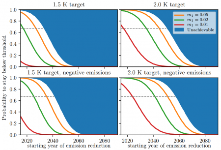 По расчетам авторов, если человечество будет наращивать долю возобновляемых источников энергии в энергобалансе на два процента в год, начинать делать это нужно до 2035 года — тогда с вероятностью 67 процентов потепление к концу нынешнего века удастся остановить на двух градусах. Если действовать решительнее и добавлять по пять процентов ВИЭ в год, дедлайн можно отложить на 10 лет.