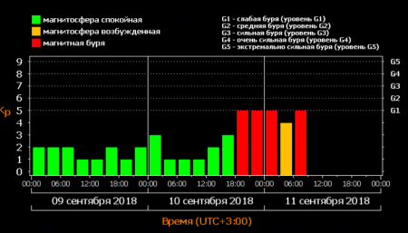 Наблюдательные приборы зарегистрировали усиление колебаний магнитного поля планеты в промежутке между 18.00 и 21.00. Геомагнитные возмущения продолжились ночью и утром 11 сентября. На момент публикации в магнитосфере Земли продолжается слабая магнитная буря.