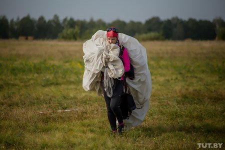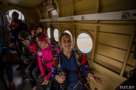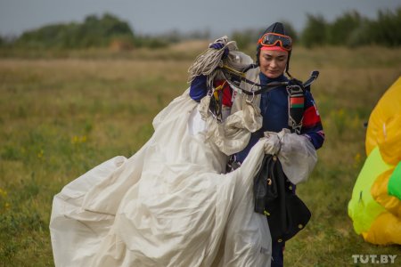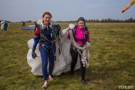 Девушки заканчивают тренировку, и нам удается поговорить с абсолютной чемпионкой Беларуси Юлией Федоровой. Парашютисткой она быть не планировала — своим призванием сначала считала биатлон. А теперь за ее спиной около 5000 прыжков, причем один из них был совершен с высоты 4700 метров при участии в установлении рекорда страны в классе «большие формации».