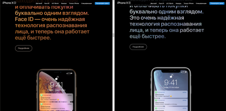 На большинстве пресс-рендеров на официальном сайте производителя смартфон также изображен таким образом, чтобы скрыть вырез в дисплее. При этом более доступный iPhone Xr всегда показывается так, чтобы «монобровь» оставалась видна.