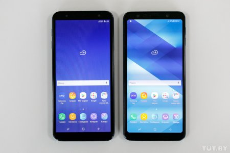 С цветопередачей сюрпризов нет. TFT-экран младшего Galaxy J6+ отображает картинку в тех оттенках, которых она задумывалась, экран иногда кажется тусклым. AMOLED-матрица Galaxy A7 (2018), наоборот, слегка приукрашивает изображение, делая его более насыщенным и контрастным, с глубоким черным. Правда, белый цвет при взгляде сбоку отдает синевой.