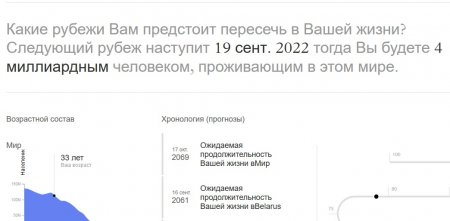 Еще одним пунктом в данных будет рассказ о самых значимых рубежах жизни от ее начала до заката. Также сайт, опираясь на мировые показатели, покажет вероятность смерти в каждом году жизни.