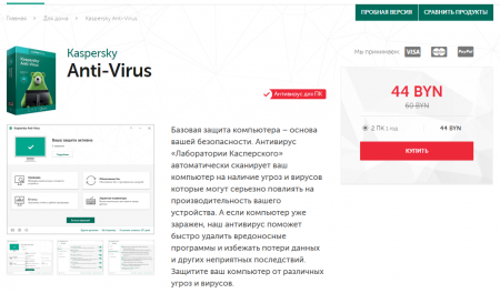 Первый месяц за предоставление антивируса Kaspersky Anti-Virus (KAV) плата не взимается, после стоимость услуги составит 0,16 рубля в сутки (около 4,8 рубля в месяц, или примерно 58 рублей в год). При этом на официальном сайте «Лаборатории Касперского» такой же антивирус с лицензией на год, но уже для двух компьютеров сейчас стоит 44 рубля.