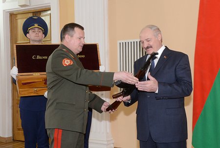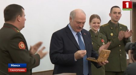 Во время посещения президентом страны Военной академии министр обороны Андрей Равков преподнес Александру Лукашенко пистолет. Сюжет показали в эфире телеканала «Беларусь 1».