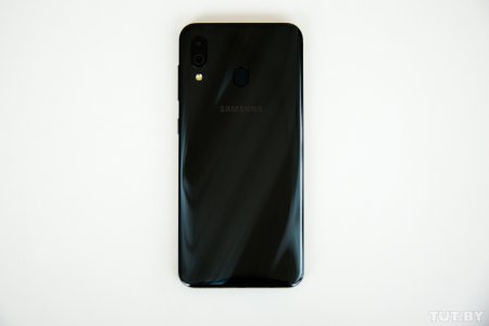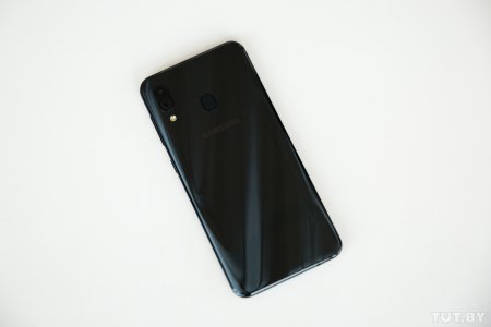 Galaxy A30 полностью пластиковый. На наш взгляд, это его главный и вместе с тем единственный эргономический недостаток. И дело тут не в недостатке удобства при использовании смартфона одной рукой (с этим как раз все в порядке), а в глянцевой задней крышке. Предположим, что она будет быстро покрываться мелкими царапинами, — лучше сразу докупить чехол.