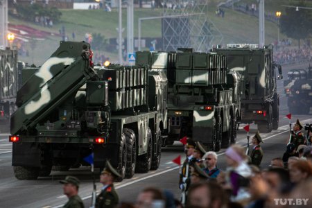 Военная техника из России — постоянный гость на наших парадах. В этот раз по Минску впервые прокатились ракетные комплексы «Искандер». Разрабатывались они в условиях Договора по ракетам средней и малой дальности, поэтому комплекс должен был точными ударами, без использования ядерной «дубинки», подавлять вражескую противоракетную и противовоздушную оборону.