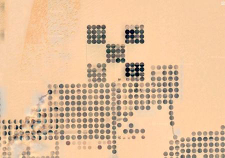Посреди африканской пустыни растут картофель, пшеница, кукуруза, арахис и лук. Они орошаются из источника в центре, чем и продиктована форма полей.
