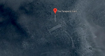 В пустыне Атакама изображен таинственный гигант «Тарапака», которому уже 9000 лет. Длина фигуры, напоминающей антропоморфного кота, составляет 86 метров. Рисунок расположен в 1370 км от геоглифов пустыни Наски, на одинокой горе Сьерро Уника, в пустыне Атакама (Чили).
