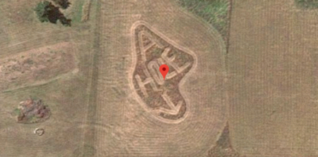 Война соседей в США привела к тому, что один из них выкосил на своем участке бранное слово и стрелку, указывающую на соседский дом.