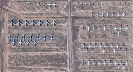 Авиабаза Девис-Монтен в Аризоне, пожалуй, самое большое кладбище самолетов в мире. На участке в 10,5 квадратного километра хранится более 4400 законсервированных американских самолетов, а также сорок космических кораблей.