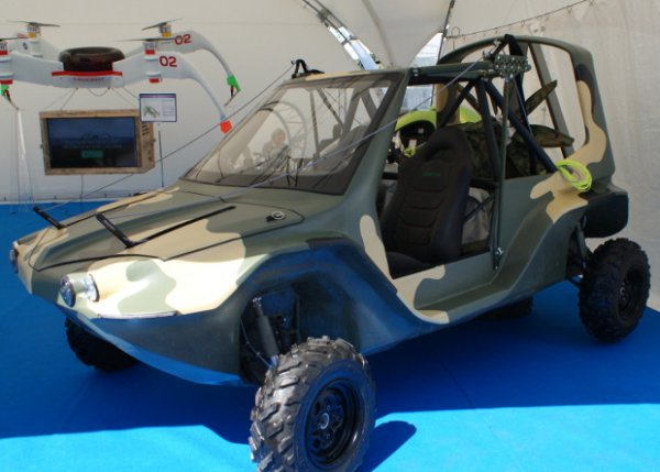 Научно-производственное объединение «Авиационно-космические технологии» и компания «Электроавтоматика» на авиасалоне «МАКС-2017», проходящем в подмосковном Жуковском, представили прототип трехсредного внедорожника «Тритон». На стенде компаний изданию N+1 рассказали, что эта машина способна ездить по пересеченной местности, плавать и летать.