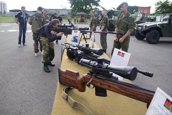 Наш экскурсовод по вооружению отметил, что коллиматорные, дневные и ночные прицелы, которыми оснащается оружие, разработаны по большей части в Беларуси: